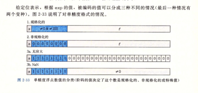 对于非规格化值:E=1-Bisas,M=f,不包括隐含的开头的1